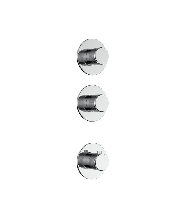 De luxe ronde draaiknoppen met een verfijnde ribbelstructuur zorgen niet alleen voor een stijlvolle uitstraling, maar bieden ook optimale grip – zelfs met natte handen. De twee geïntegreerde stopkranen maken het eenvoudig om de watertoevoer te regelen en het water te verdelen over twee doucherichtingen, bijvoorbeeld een regendouche en handdouche.