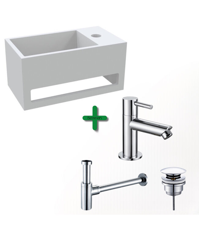 De Fonteinset Bella Chroom Rechts is vervaardigd van hoogwaardig solid surface materiaal, wat zorgt voor een strakke en moderne uitstraling. Het mat witte oppervlak geeft de fontein een frisse en stijlvolle look, terwijl de chroom accenten een vleugje luxe toevoegen. Dit materiaal is niet alleen slijtvast, maar ook vochtbestendig, waardoor het langdurig mooi blijft, zelfs in vochtige omgevingen zoals het toilet.