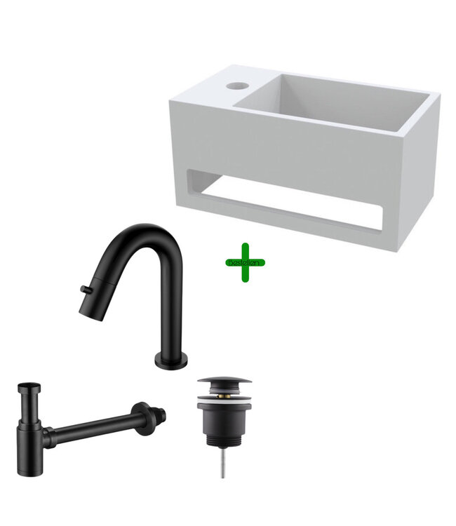 Aloni Fonteinset Mila Mat Zwart Links Fontein met handdoekhouder Solid surface