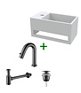 Het fonteintje heeft een handig kraangat aan de rechterkant, waardoor je gemakkelijk een moderne kraan kunt plaatsen. Bovendien beschikt de fonteinset over een handdoekhouder, waardoor je altijd een handdoek bij de hand hebt. De meegeleverde sifon en plug zijn van goede kwaliteit en zorgen voor een optimale afvoer van water.