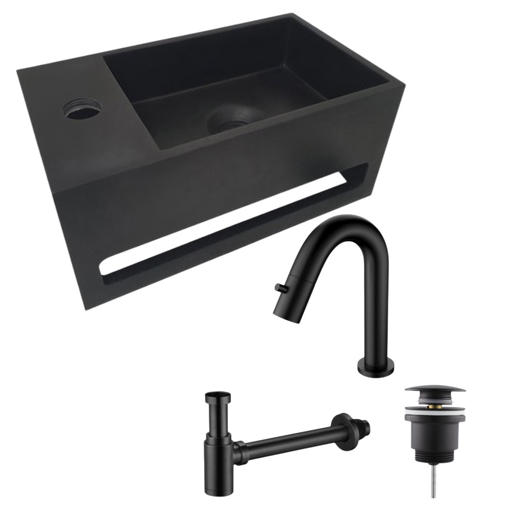 Aloni Fonteinset Mila Zwart Mat Rechts Fontein Solid Surface met handdoekhouder