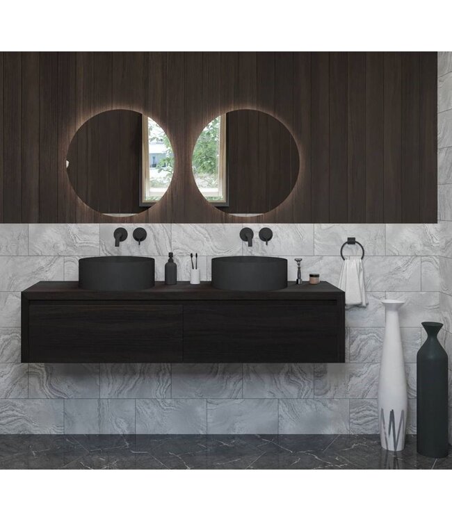 Ares Wastafelonderkast met topblad Charcoal 160x45x35 cm is gemaakt van eiken fineer op MDF-basis, wat dit materiaal uitermate geschikt maakt voor vochtige plekken als een badkamer. Een andere voordeel van gefineerd eiken is tevens dat het een hard en glad oppervlak heeft dat gemakkelijk te onderhouden is. Het fineerlaagje zorgt er namelijk voor dat vuil en bacteriën geen kans krijgen om zich te hechten.