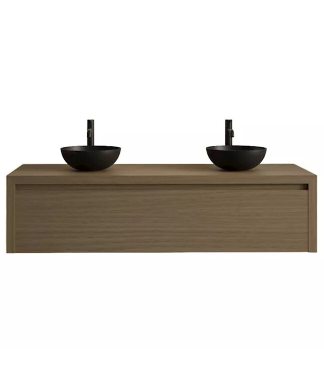 Ares onderkast is een echte blikvanger in uw badkamer. Het meubel is gemaakt van fineer eiken wat zorgt voor een stevige en duurzame constructie. De onderkast heeft 2 lades die greeploos is en een softclose sluiting heeft.
