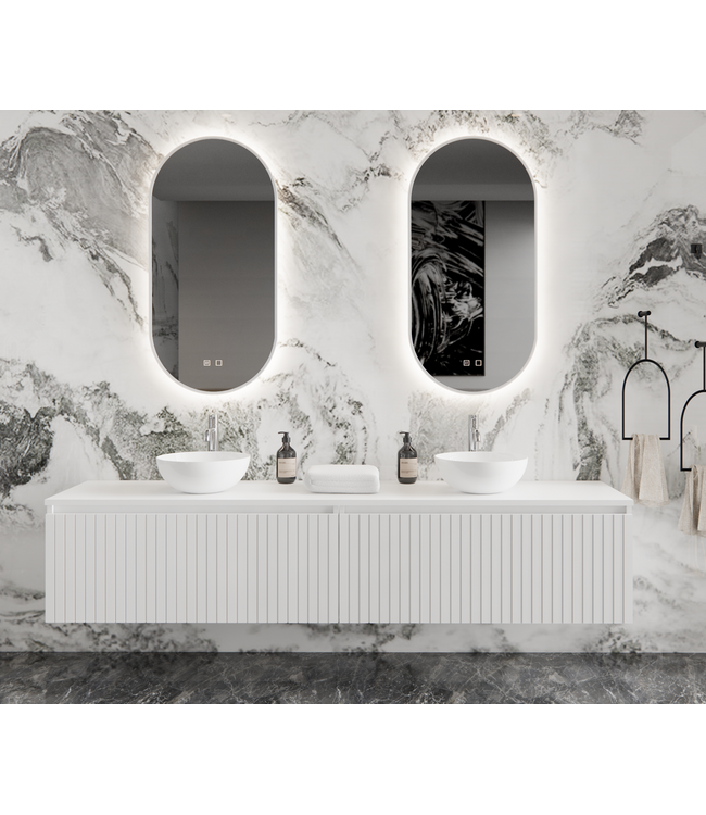 Kenmerken Arges Badkamermeubel met Ribbelfront Mat Wit 210cm: