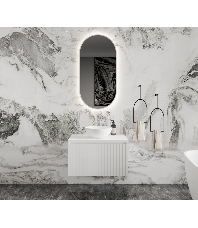 Transformeer je Badkamer nu met de Gliss Design Arges - Mat Wit 70 cm, het Perfecte Badkamermeubel met Ribbelfront!