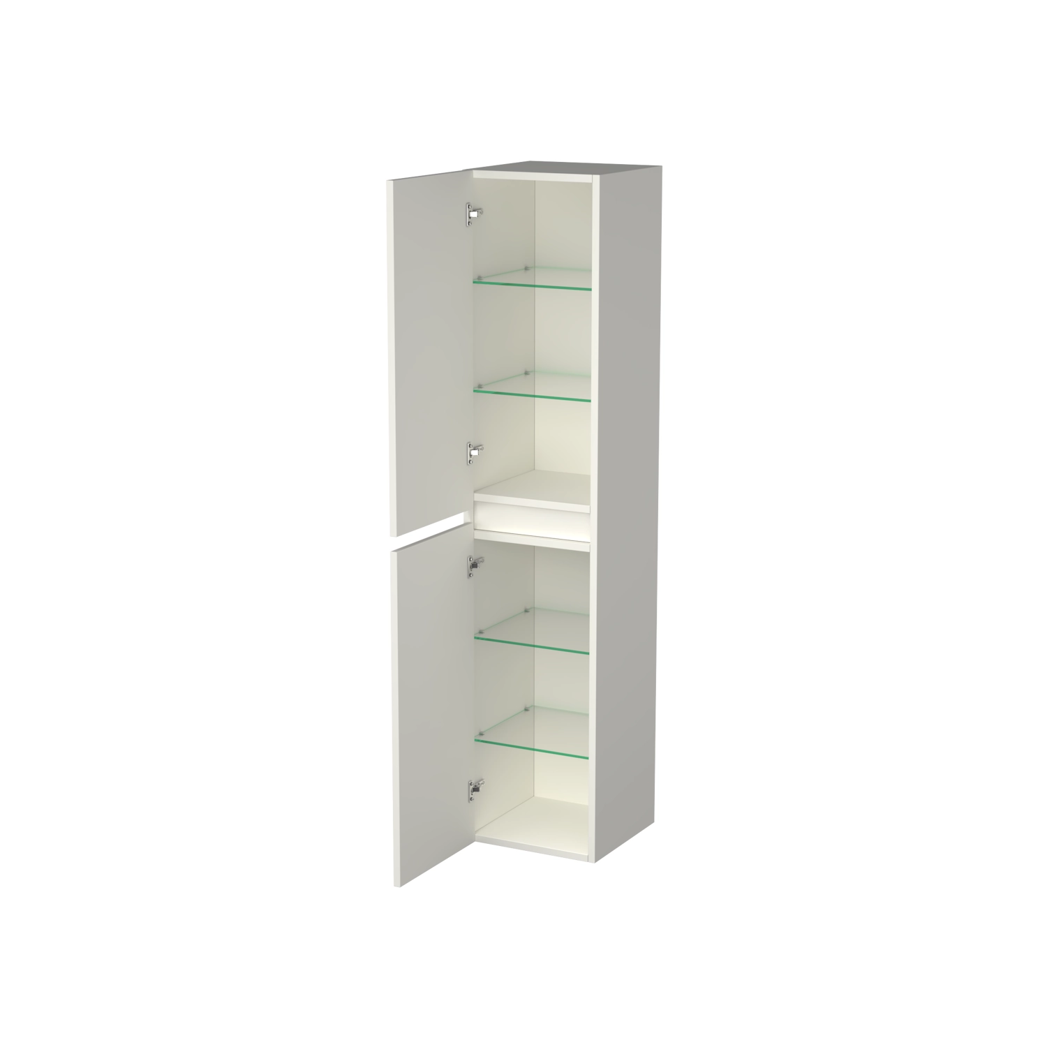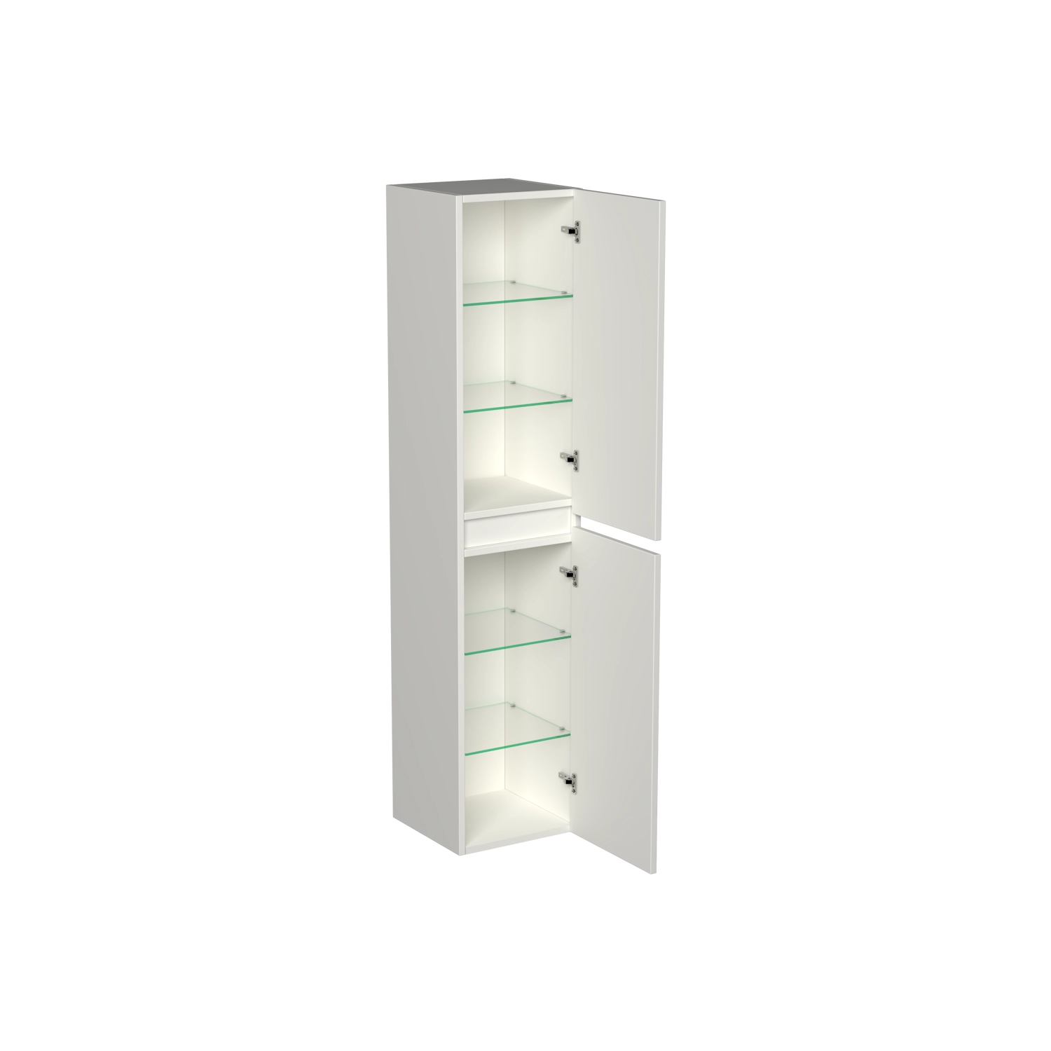 De Badkamerkast Dutchline 160×35 cm in glanzend wit is een stijlvolle en functionele kolomkast die optimale opbergruimte biedt in je badkamer. Met twee deuren en meerdere glazen legplanken kun je handdoeken, toiletartikelen en andere badkamerbenodigdheden netjes organiseren. Dankzij de vochtbestendige afwerking is deze kast perfect geschikt voor vochtige ruimtes. Het omkeerbare deursysteem (links of rechts sluitend) geeft flexibiliteit bij installatie, en de Camar-bevestiging (Type 807) zorgt voor een stevige wandmontage. Combineer deze kolomkast met Dutchline onderkasten voor een samenhangende badkamerlook.