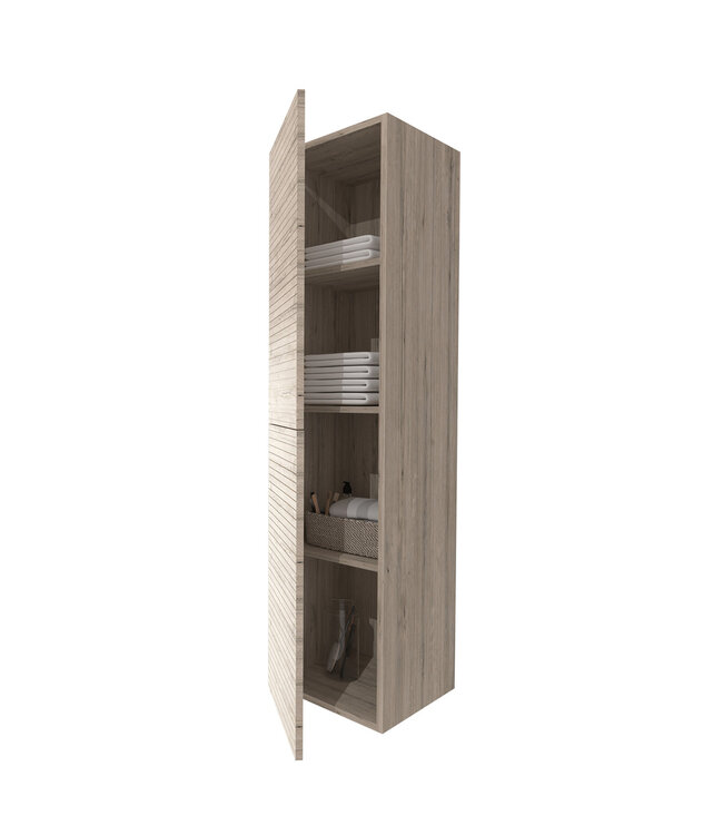 Maak kennis met de perfecte toevoeging aan jouw badkamer: de Aloni Elite badkamerkast met ribbelfront, een meesterwerk van elegantie en functionaliteit. Deze kolomkast, met zijn verfijnde design en luxueuze afwerking, belichaamt de moderne esthetiek, terwijl het ribbelfront een subtiele textuur toevoegt die zowel visueel aantrekkelijk als tactiel verleidelijk is.