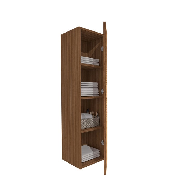 Met twee ruime deuren biedt deze kolomkast voldoende opbergruimte voor handdoeken, toiletartikelen en andere badkamerbenodigdheden. De Walnootkleur voegt een warme, uitnodigende sfeer toe aan de ruimte, waardoor het badkamermeubel met ribbels niet alleen praktisch is maar ook een stijlvol statement maakt.