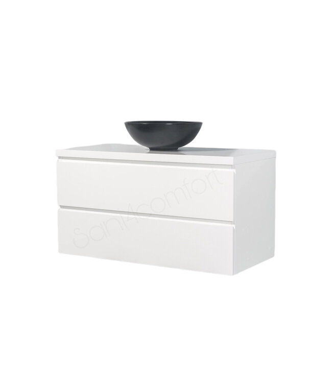 Badkamermeubel 100x50x45cm Sally Glans Wit Topblad zonder uitsparing - Hangend 2 Lades Softclose Greeploos Zonder Kraangat en afvoergat. Lees meer.