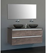 Wastafelonderkast 120cm met twee softclose lades + Natuursteen topblad met twee afvoer uitsparingen + 2x waskommen natuursteen. Lees meer.