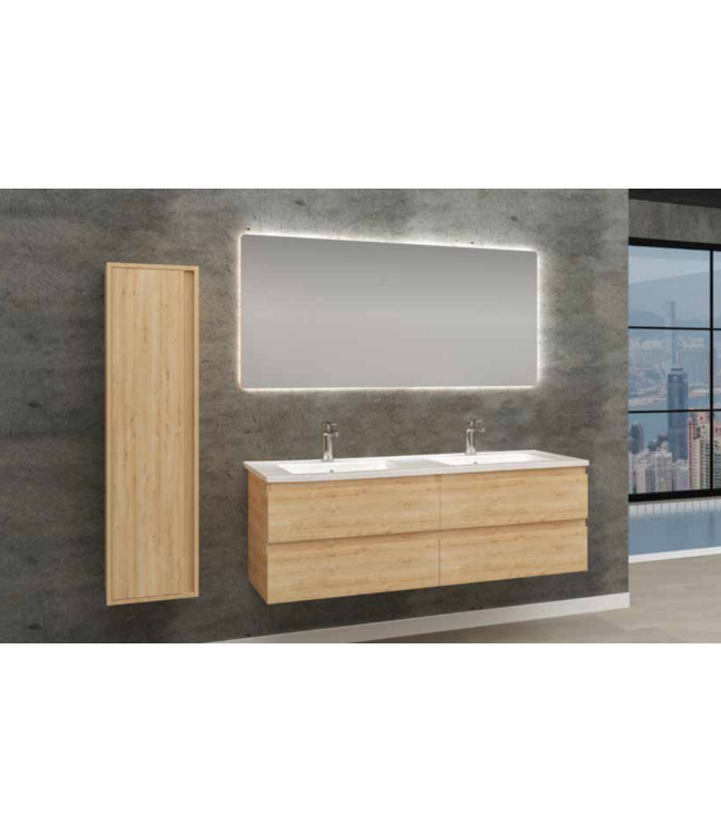 Deze Badkamermeubel 160x46x50cm Mat Eiken 4 softclose lades is het van merk Creavit en behoort tot de serie Sally. Deze set bestaat standaard uit een onderkast en een bijpassende wastafel. U heeft echter de mogelijkheid om de set compleet te maken door een bijpassende kolomkast en badkamerspiegel aan uw bestelling toe te voegen. Onderaan de webpagina kunt u onder de kopjes 'Kies Alternatief' eventueel een andere wastafel, kolomkast of badkamerspiegel aan de set toevoegen.