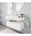 De wastafel biedt flexibiliteit in gebruik: u kunt kiezen voor links, rechts of midden geplaatste wasbakken, evenals een uitvoering met of zonder kraangat, zodat het meubel perfect aansluit bij uw persoonlijke badkamerontwerp. Inclusief ophangbeugels voor eenvoudige montage en een strakke, zwevende uitstraling.