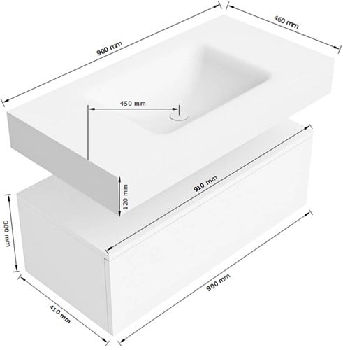 | Afmetingen badkamermeubel bxdxh | 90 x 41 x 30 cm |