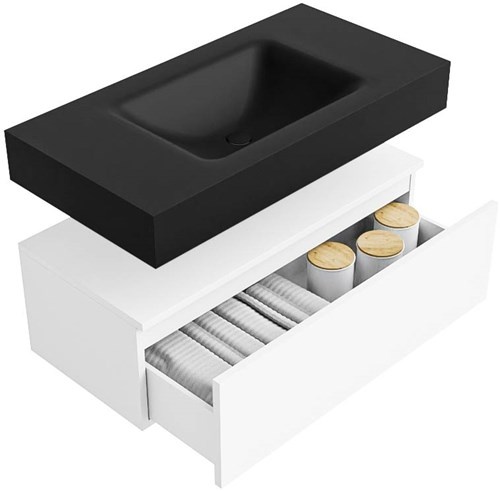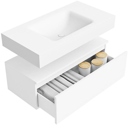 Badkamermeubel Alan Talc 90cm Onderkast met wastafel Vrijhangend