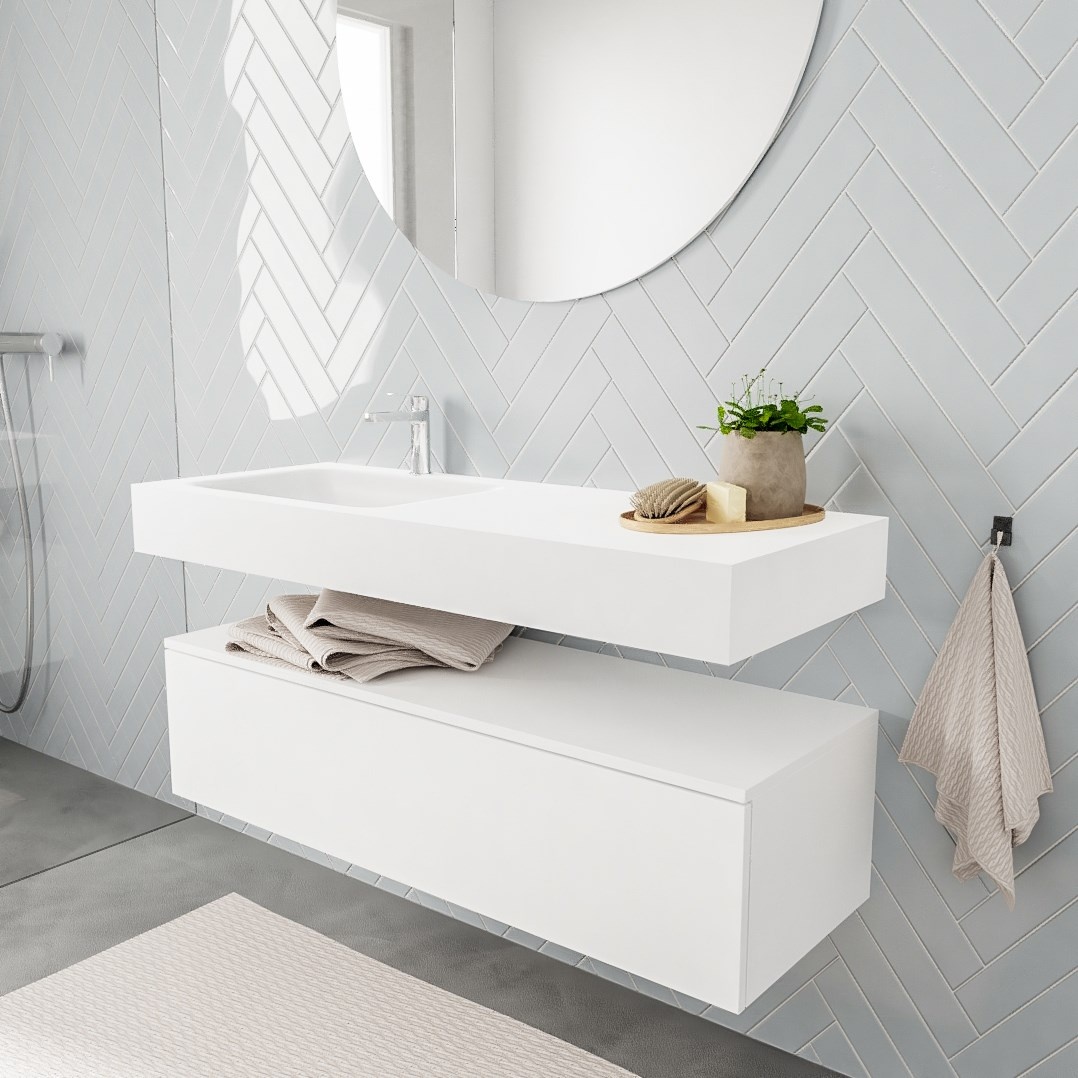 Badkamermeubel Alan Talc / Talc 120cm Onderkast met 1 lade - Vrijhangend wastafel