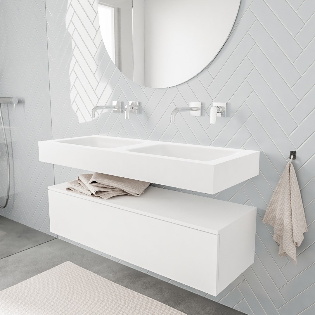 Kleur wastafel: Mat Wit / Talc – Materiaal: Solid Surface