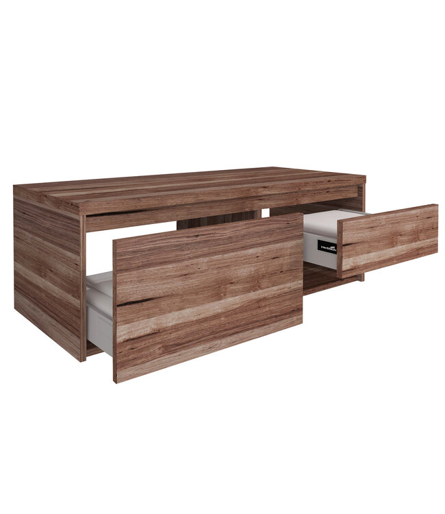 Anders dan andere badkamermeubels heeft de Ares Garda Walnoot 120cm geen uitsparing voor kraan en sifon. Dit zorgt voor een strakke uitstraling en maximaliseert de beschikbare ruimte, perfect voor een ruimtelijke badkamerindeling.