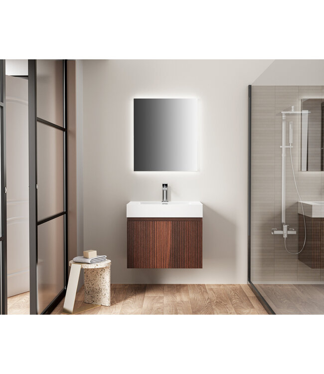 Afmetingen: 60x46x55cm ✓ MDF ✓ Front met ribbels ✓ 1x diepe lade met softclose sluiting ✓ Beschikbaar in 60 en 80cm ✓ Incl, Wastafel met kraangat Lees meer.