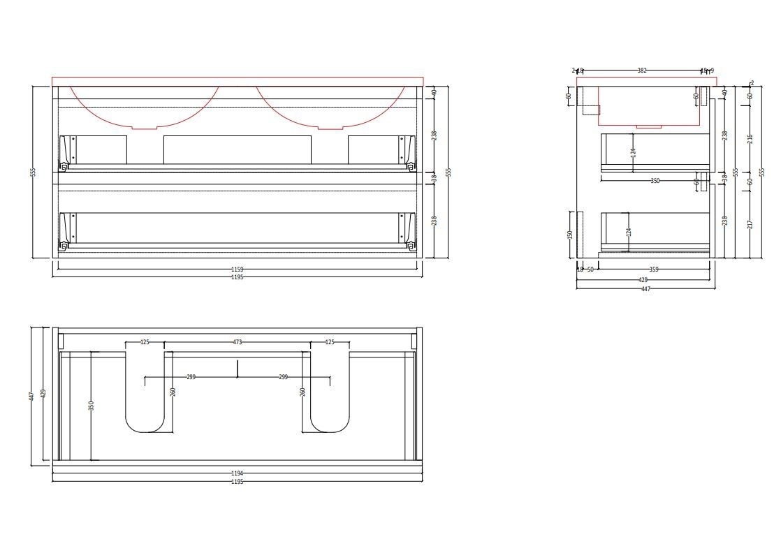 | Afmetingen badkamermeubel (BxDxH) | 119,5x447x573mm |