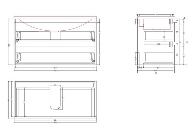 | Afmetingen badkamermeubel (BxDxH) | 199x447x573mm (2x 100cm) |