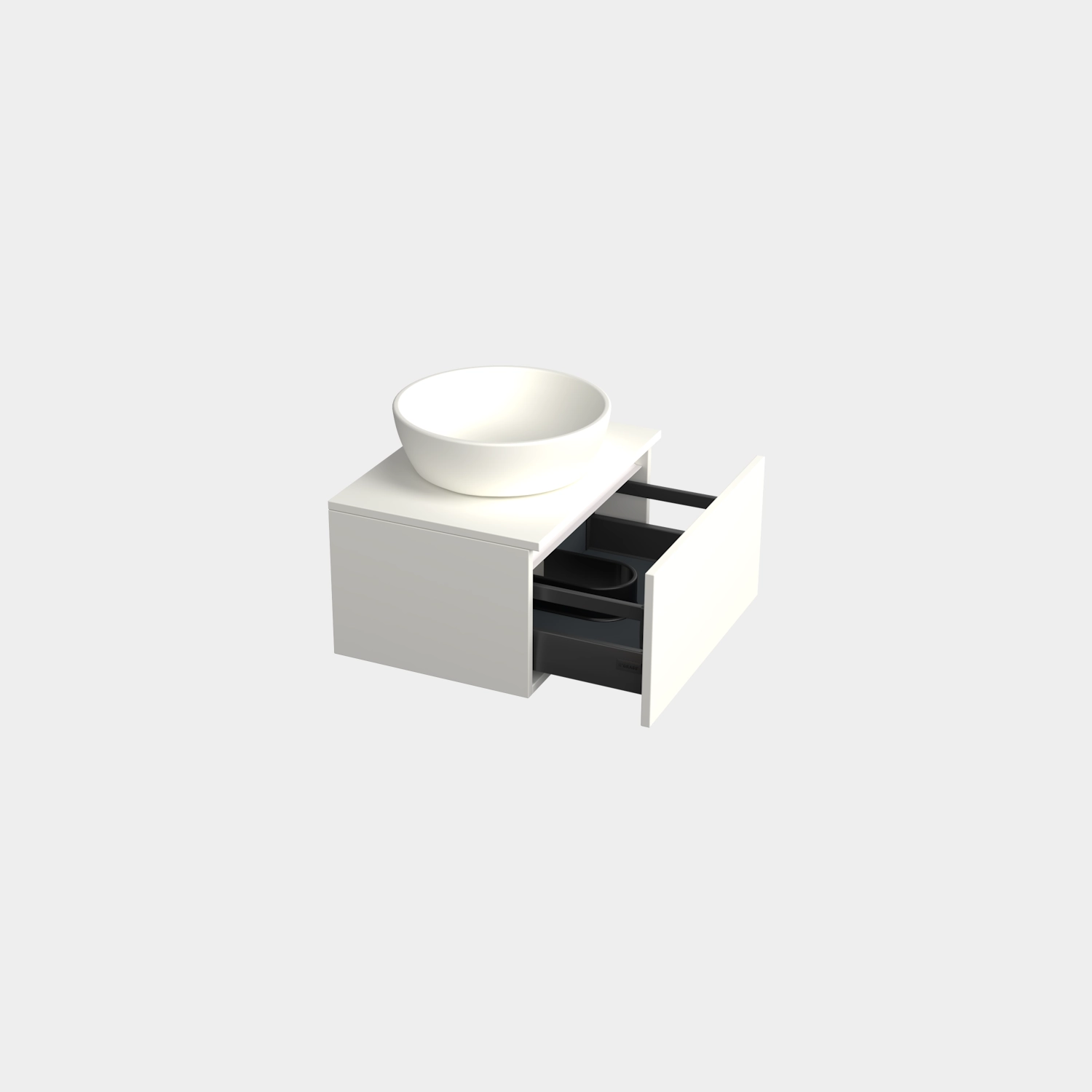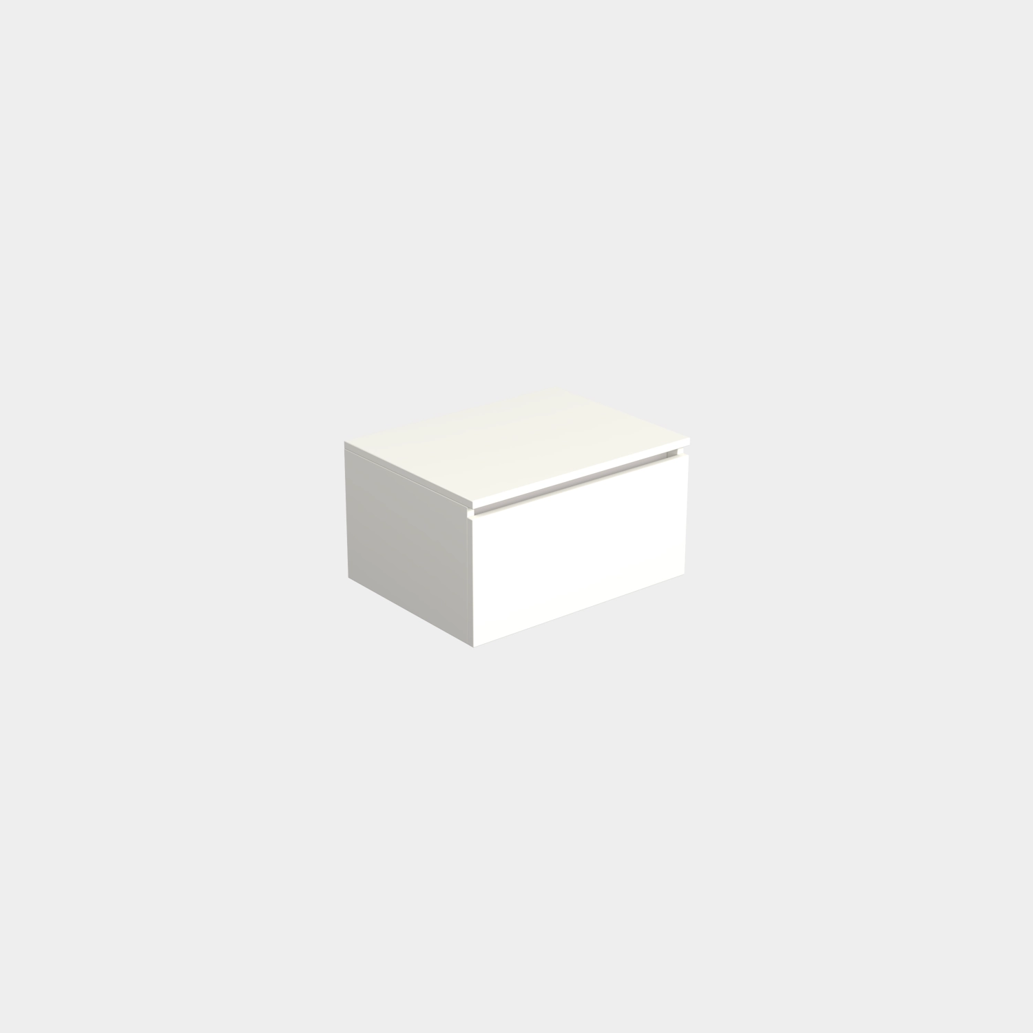 Het badmeubel is vervaardigd uit FSC-gekeurd MDF en afgewerkt in een tijdloze mat witte kleur. Met 1 ruime lade voorzien van softclose-techniek en Grass DWX rails met stabilisators geniet u van een geruisloze en soepele werking. Het topblad is inbegrepen en biedt voldoende ruimte voor uw wastafel en badkameraccessoires. Dankzij de 1 sifonuitsparing is de installatie eenvoudig en netjes weg te werken.