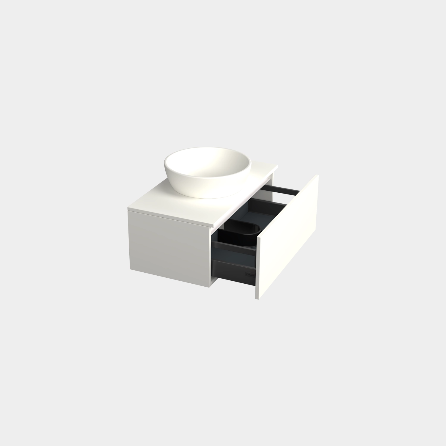 Koop de strakke badmeubel onderkast Lepor Mat Wit 80cm. Duurzame, FSC-gekeurde onderkast met topplaat van Dutchline met 1 softclose lade. Snelle levering bij Sani4Comfort!