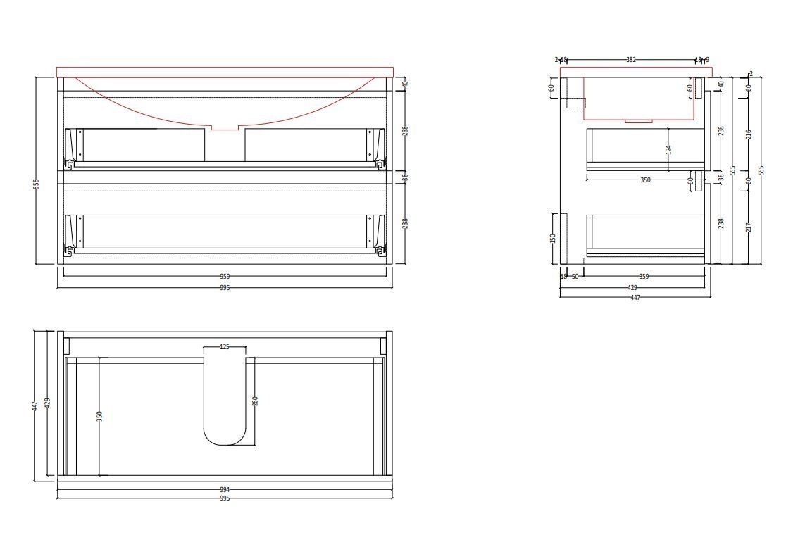 Afmetingen badkamermeubel bxdxh | 1000x447x575mm |