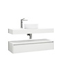 De onderkast kan eveneens met de meegeleverde bevestigingsmateriaal zwevend opgehangen worden. Doordat er geen uitsparing gemaakt hoeft te worden bij de lade, zoals het wel het geval is bij een klassiek badkamermeubel, heeft u de beschikking over een ruime opberglade. Hierin kunt u al uw badkamerbenodigdheden overzichtelijk opbergen. Er is ook een vrije ruimte tussen het wastafelblad en de ladekast. Dit is een uitstekende plek om uw opgerolde handdoeken op een trendy wijze op te bergen. Door deze indeling creëert u een waar wellness gevoel in uw badkamer.