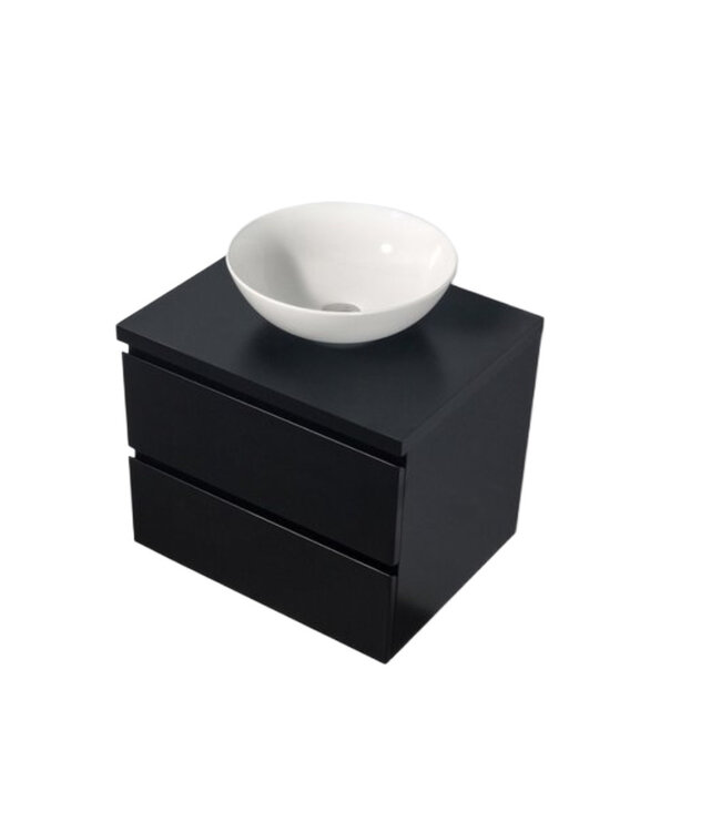 Badkamermeubel Sally met Topblad Mat Zwart 60x45x50cm zonder uitsparing - Hangend - 2 Lades Softclose - Greeploos - Zonder Kraangat Lees meer.