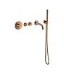 Deze inbouw badkraan is vervaardigd uit hoogwaardig messing, wat niet alleen duurzaamheid garandeert, maar ook een luxe uitstraling geeft aan jouw badkamer. De geborsteld bronzen afwerking voegt een vleugje elegantie toe aan het geheel. De grepen zijn voorzien van een geribbeld motief, wat niet alleen zorgt voor een goede grip, maar ook een uniek accent geeft aan de kraan.