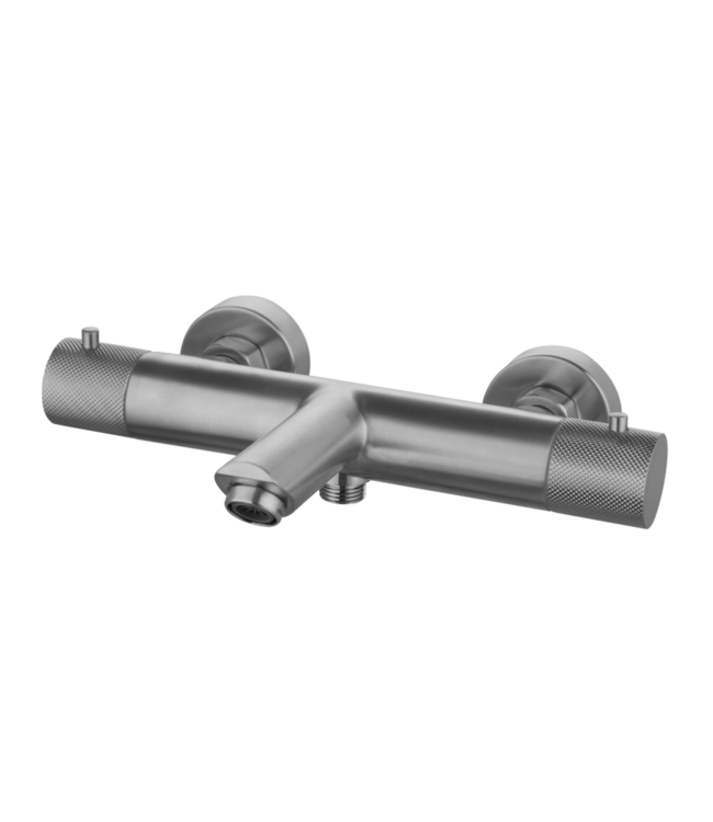 De Badkraan Ribbed Gun Metal Thermostaatkraan valt niet alleen op door zijn functionaliteit, maar ook door zijn stijlvolle design. Het ribbel motief geeft de kraan een unieke en moderne uitstraling die perfect past in elke eigentijdse badkamer.