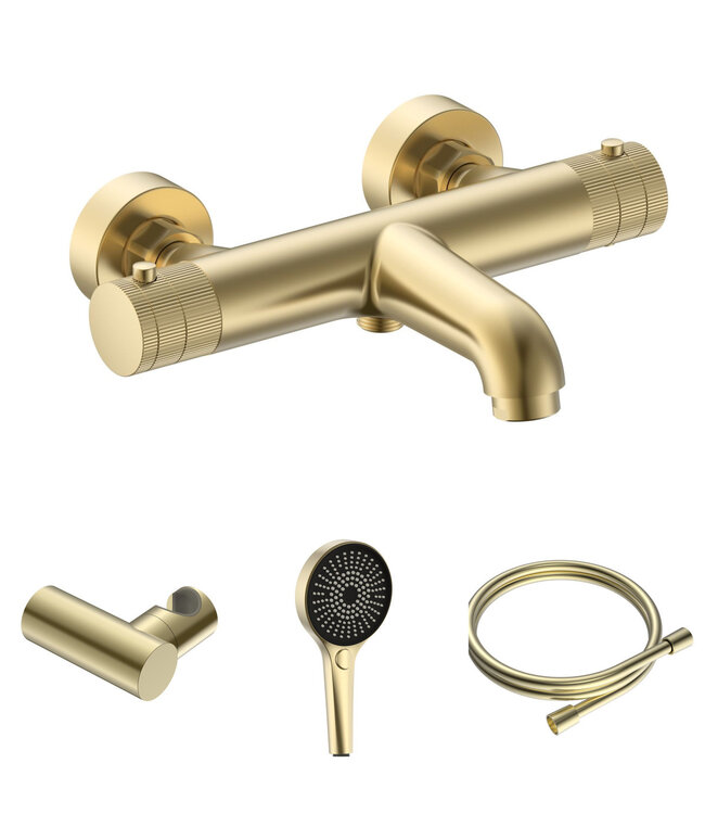 ✓ Opbouw badkraan ✓ Met thermostaatfunctie ✓ Blokkering op 38-graden ✓ Beschikbaar in 5 kleuren ✓ Messing materiaal ✓15-HoH - PVD-Gecoat: Corrosiebestendig, Hoge hardheid en slijtvastheid incl. Handdouche set. Lees meer.