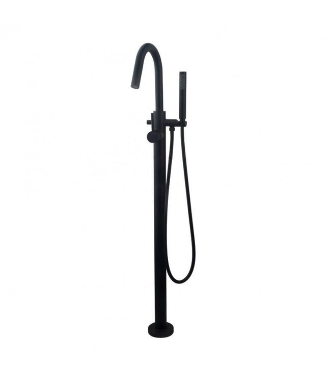 Beoordeel SANETTI Badkraan Vrijstaand Nomi Mengkraan Rond Mat Zwart 1 Greeps met Staafhanddouche