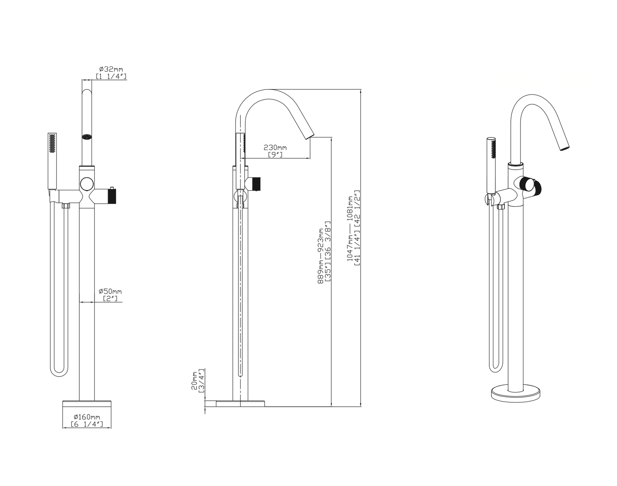 De Gunmetal kleur geeft een robuuste, maar chique uitstraling, terwijl de PVD-gecoate afwerking zorgt voor een kraan die corrosiebestendig, slijtvast en eenvoudig in onderhoud is. Met een hoogte van 1081 mm en een uitloop van 923 mm biedt deze thermostatische badkraan optimale functionaliteit, zonder concessies te doen aan stijl. De meegeleverde vloerplaat (diameter 160 mm) maakt de installatie stabiel en volledig af.