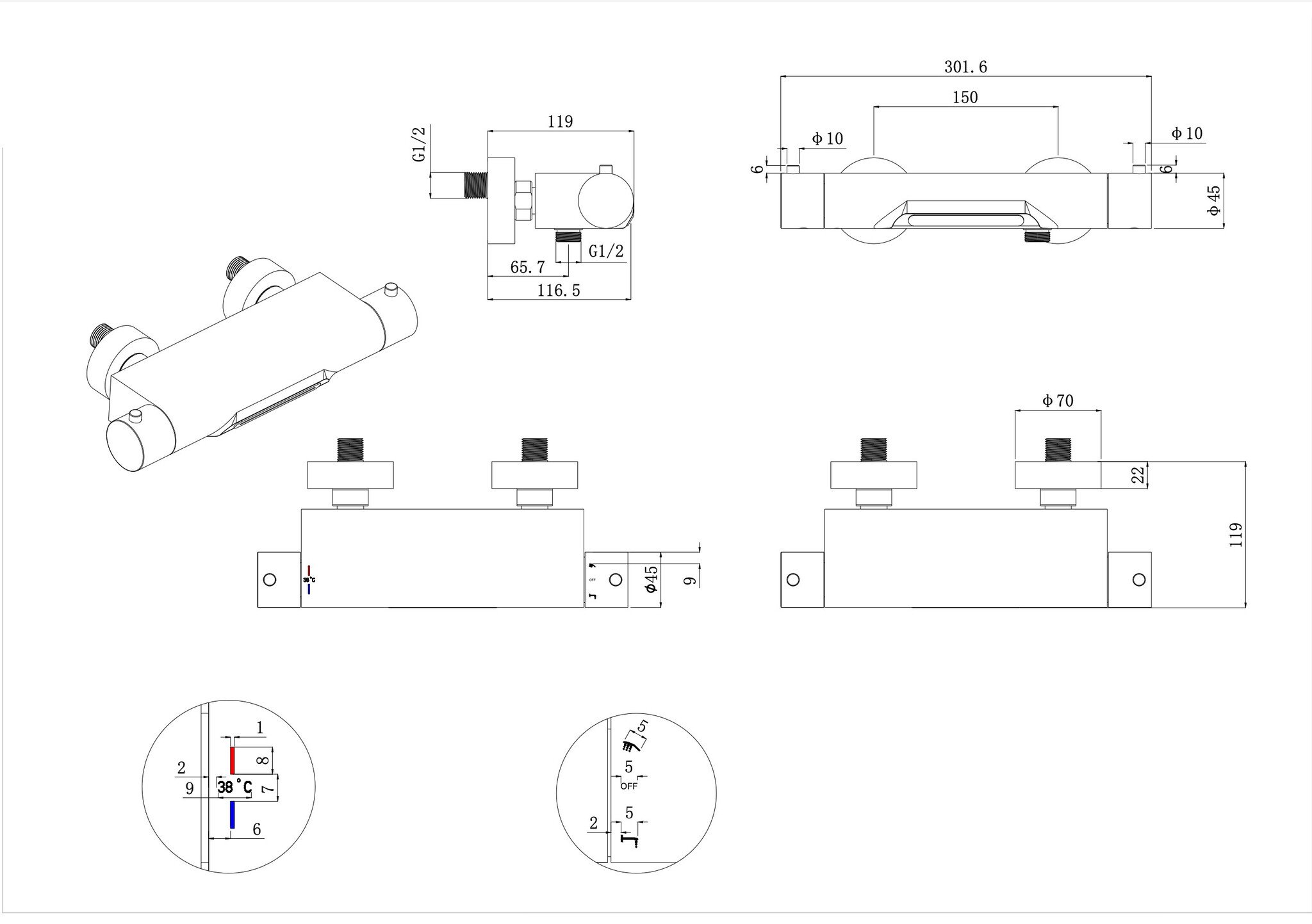 Deze opbouw bad thermostaatkraan is geschikt voor wandmontage en wordt geleverd met S-koppelingen en rozettenvoor een snelle, nette installatie.