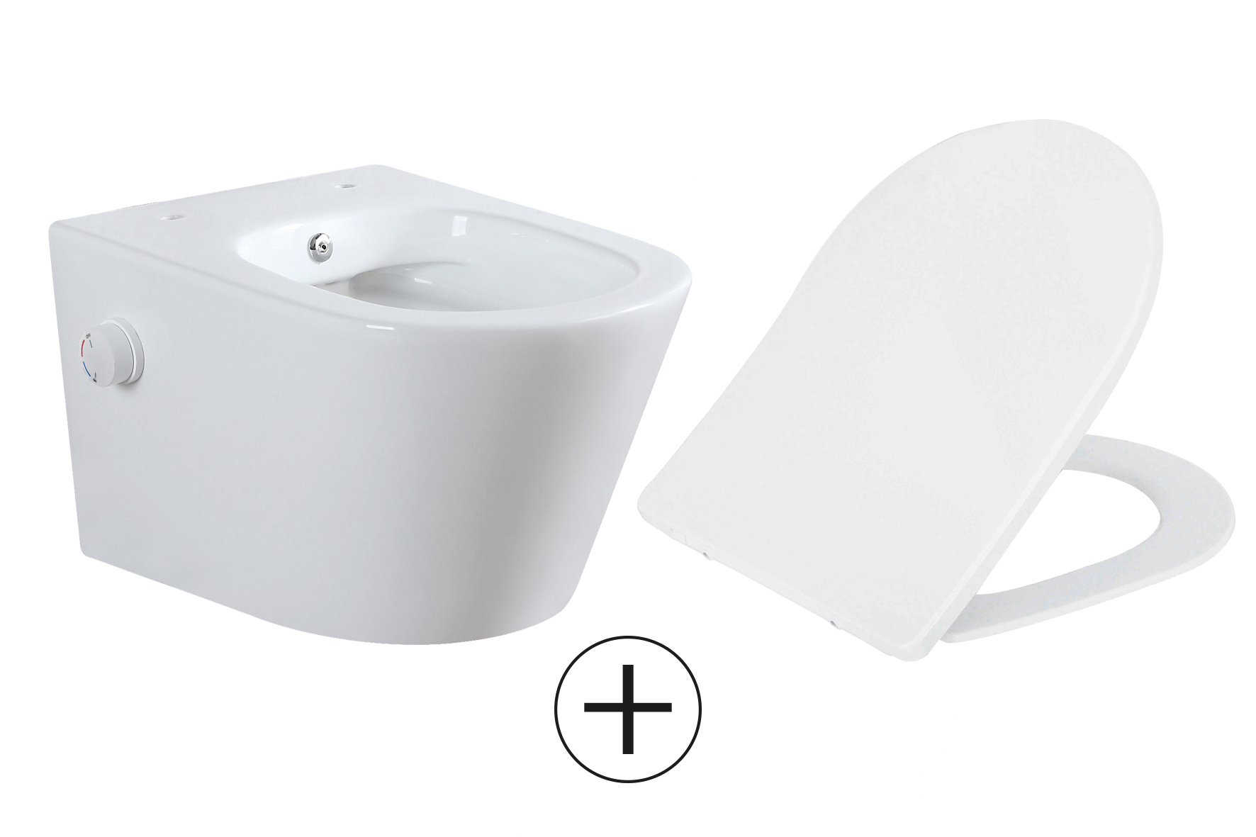 Toilet met bidet ✓ Randloos ✓ Geintegreerde bidetkraan Warm/Koud ✓ Incl. wc-bril Shade ✓ 5 jaar garantie ✓ Diepspoel ✓ 52x36x40 cm