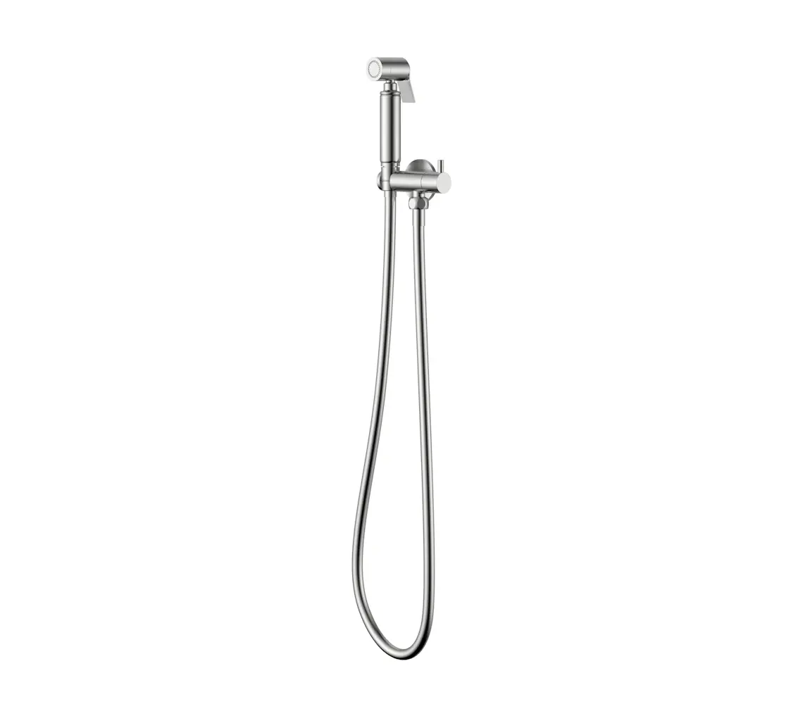 De set bestaat uit een robuuste opbouw bidetkraan van RVS-304, een bijpassende bidet handdouche en een silicone doucheslang van 120 cm, volledig uitgevoerd in dezelfde elegante kleur. De geborsteld stalen afwerking geeft een luxe, tijdloze uitstraling die perfect past bij diverse interieurstijlen.