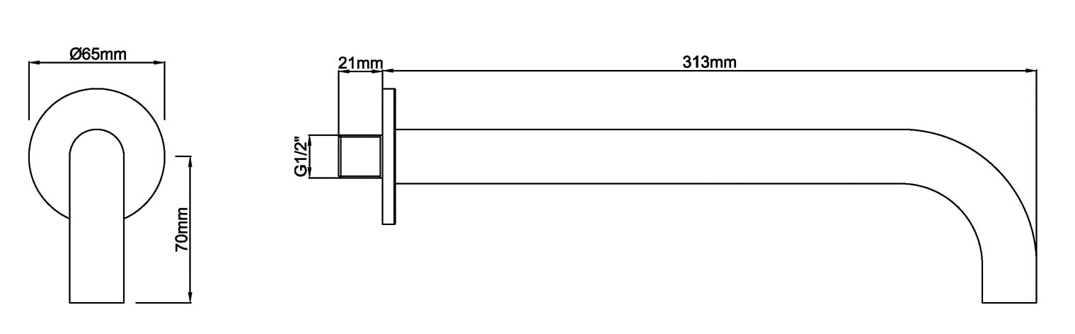 - Opbouwhoogte onderkant kraanmondstuk: 70 mm