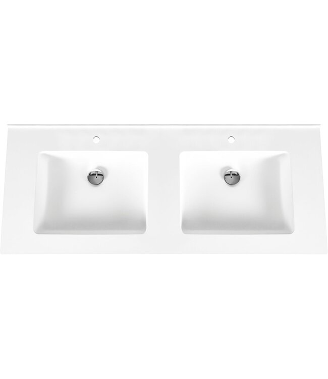 CREAVIT Creavit Sally Solid Surface wastafel 120cm Mat Wit dubbele wasbak met kraangat 2 zonder overloop.