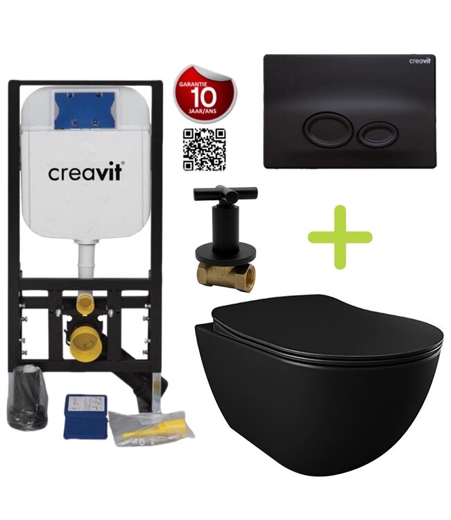 Creavit toiletset Zwart bestellen? Wanneer u uw toilet modern en trendy look wilt geven met de top producten van nu en u wilt hier niet topprijs voor wilt betalen , dan is dit hangtoilet set de beste set om aan te schaffen, want dit set voldoet in meerdere opzichten aan de verwachtingen van een luxe toiletruimte.