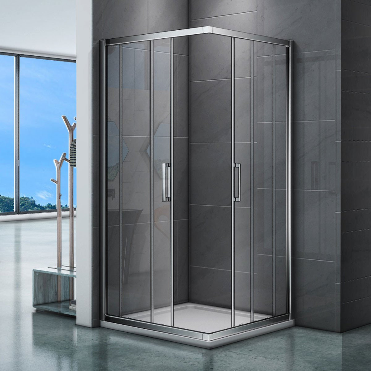 Douchecabine 100x100 cm Liz Schuifdeur Hoekinstap Vierkant Chroom helder glas
