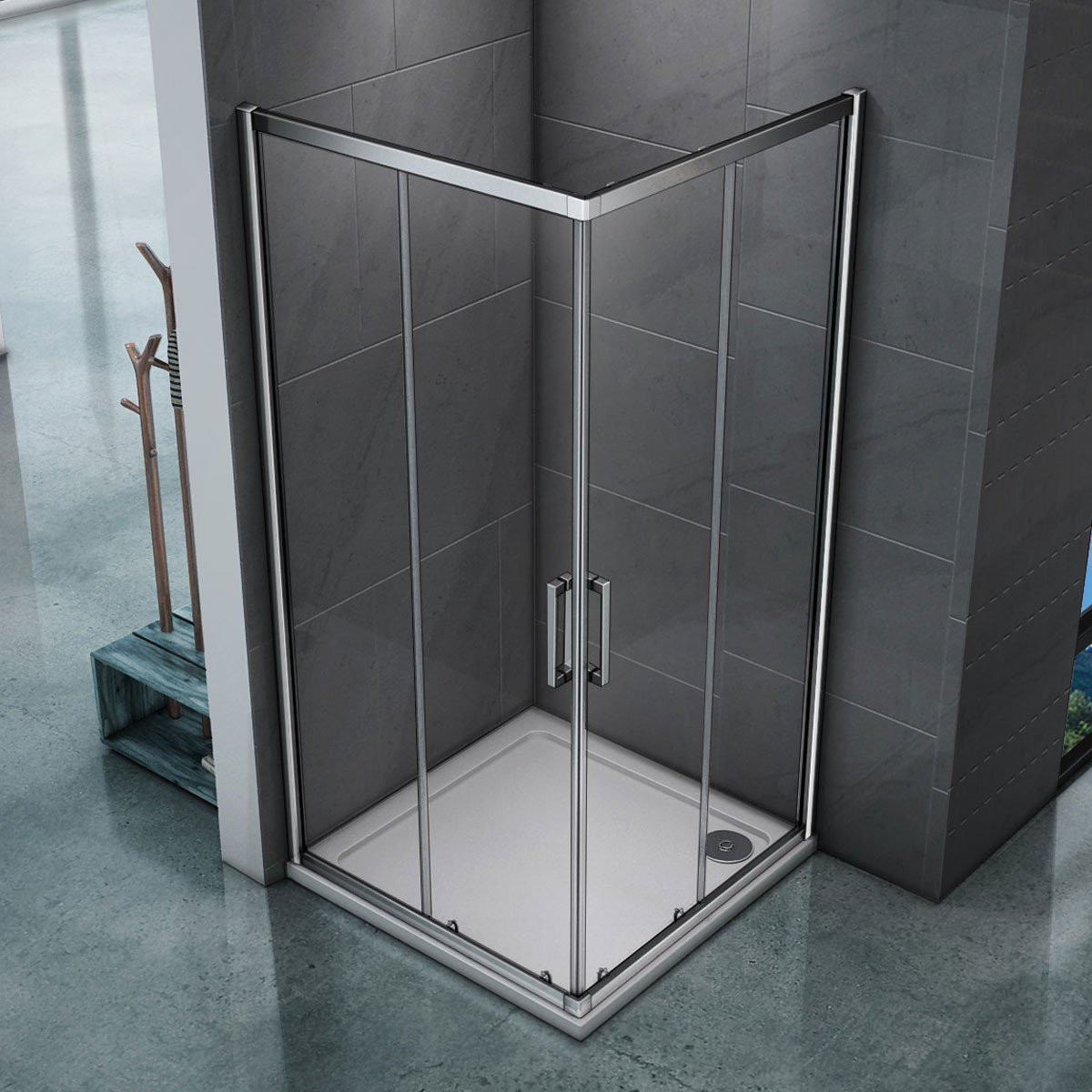 - Ruimtebesparend: vierkante douchecabine met 2 schuifdeuren