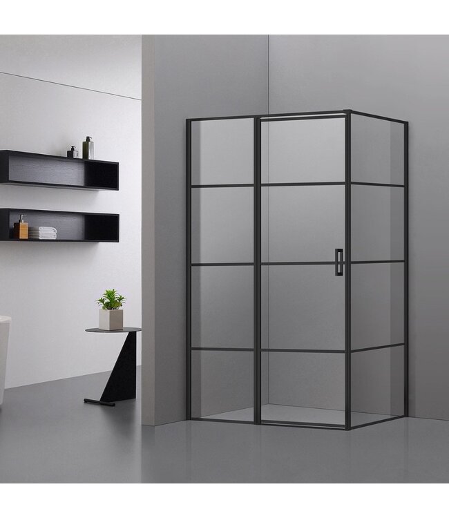 Wanneer u opzoek bent naar een moderne en trendy douchecabine met een elegante Mat Zwarte Finish dan is Douchecabine Collins Mat Zwart Vierkant 90x100cm een uitstekende keuze. De vormgeving door middel van kleine ramen in het mat zwart aliminium profielen geven instant chique uiterlijk in uw badkamer. MetDouchecabine Collins Mat Zwart Vierkant 90x100cm Draaideur bent u helemaal trend proef. Verder bestaat Douchecabine Collins Mat Zwart Vierkant uit een vaste wand, een openslaande deur met een zij instap en een stabilisatiestang. U leest in het kort