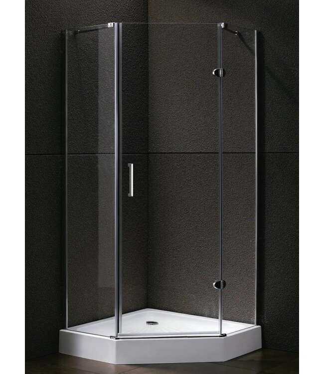 Een douchecabine plaatsen in de badkamer met luxe uitstraling en ruime instap? Doordat Douchecabine infinty een vijfhoekvorm heeft, wordt er ruimte bespaard in de badkamer. Daarnaast profiteert u van een brede instap. Stevige montage dankzij bijgeleverde stabilisatiestangen.