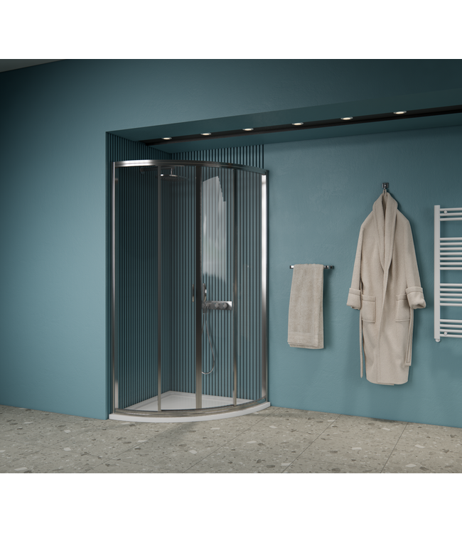 De Opal Kwartronde Douchecabine staat garant voor een ultieme doucheruimte-ervaring. Het chroomkleurige profiel, gecombineerd met de schuifdeur en nano-coating, maakt deze cabine niet alleen een functioneel element maar ook een visueel hoogtepunt in jouw badkamer.
