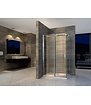De douchecabine betredt u doormiddel van een schuifdeur.. Boven is in de deur bevinden zich twee rollen op de stabilisatierail. Deze rollen glijden over de rails en zorgen ervoor dat de deur makkelijk geopend en gesloten kan worden. Onderaan de deur bevind er een deur geleider, zodat de schuifdeur stabiel blijft.