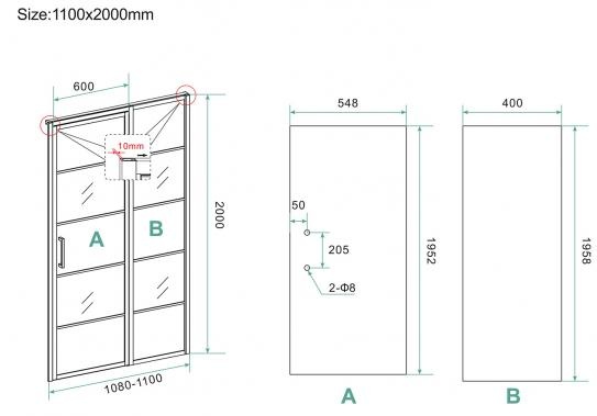 - Deurzijde: 110 cm breed x 200 cm hoog (60 cm deur + 50 cm vast paneel)