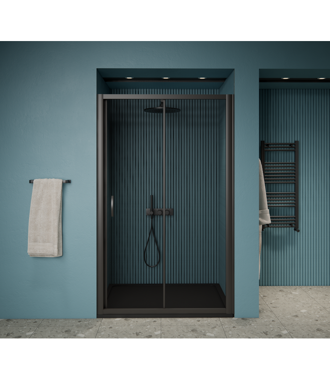 De schuifdeurfunctionaliteit van de Amore Zwart maakt het ideaal voor nissen in de badkamer. Het minimaliseert de noodzaak van extra ruimte voor de draaicirkel van een traditionele deur, waardoor het een slimme keuze is voor compacte badkamers.