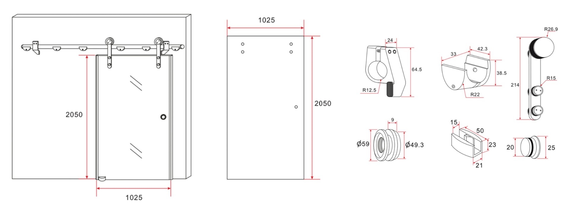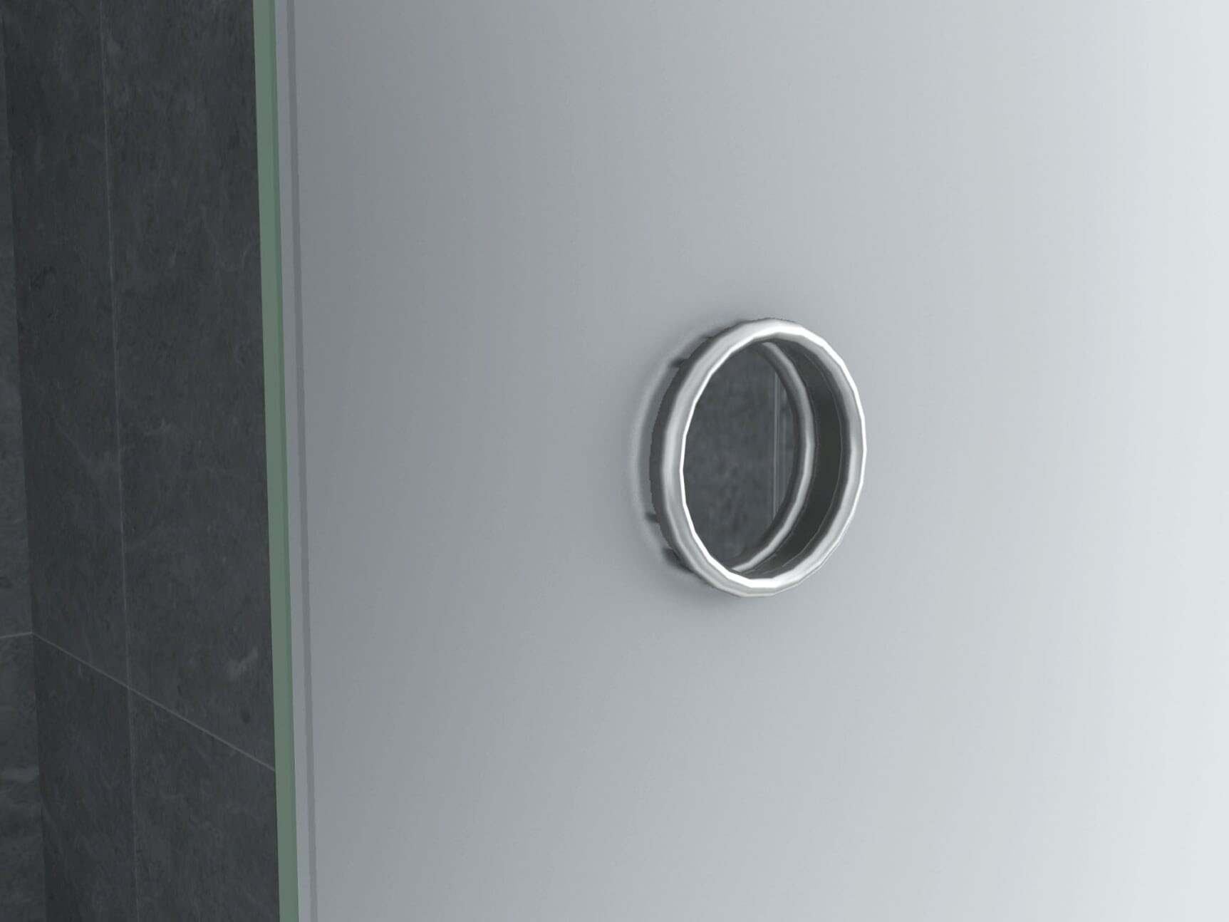 Het robuuste RVS beslag is een prachtig aangezicht en zet een industriëel design neer. De glazen deur is gemaakt van melkglas wat 8mm dik is. Als de deuropening geblokkeerd is, kan u dus niet naar binnen kijken. De privacy blijft behouden. In de deur zit een ronde uitsparing met daarin een RVS ring. Hiermee schuif je eenvoudig de deur van links naar rechts. Aan de onderzijde wordt een extra voetstuk geplaatst, zodat de deur niet kan klapperen.