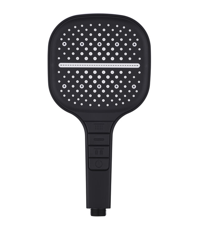Ontdek de ultieme douche-ervaring met onze Douchekop Rain Mat Zwart Luxe handdouche met 3-straalsoorten. Gemaakt van hoogwaardig ABS-kunststof in een ovaal ontwerp, biedt deze handdouche een luxueuze uitstraling voor elke badkamer. Met een antikalksysteem en instelbare sproeistraal, geniet u van een moeiteloze reiniging. De drukknopbediening maakt het aanpassen van de straalsoorten eenvoudig. Met een diameter van 130 mm en een lengte van 230 mm biedt deze handdouche comfort en stijl. Advies: Voeg een bijpassende wandhouder en doucheslang toe voor een complete ervaring.